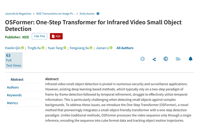 近日,北京理工大學光電學院許廷發教授科研團隊在紅外弱小集群目標檢測方面取得新的進展。